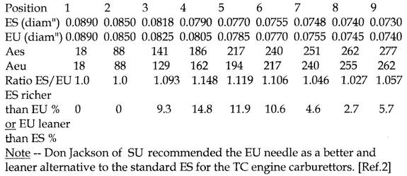 Don Jackson‘s opinion is that the standard ES needle for the T- series is “far too rich” and the EU is better. My experience supports this and I am still experimenting at the time of writing with my own TC.